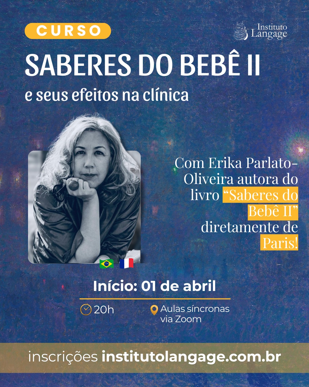 O Instituto Langage convida você para participar do Curso “Saberes do Bebê II e Seus Efeitos na Clínica” com Erika Parlato-Oliveira.